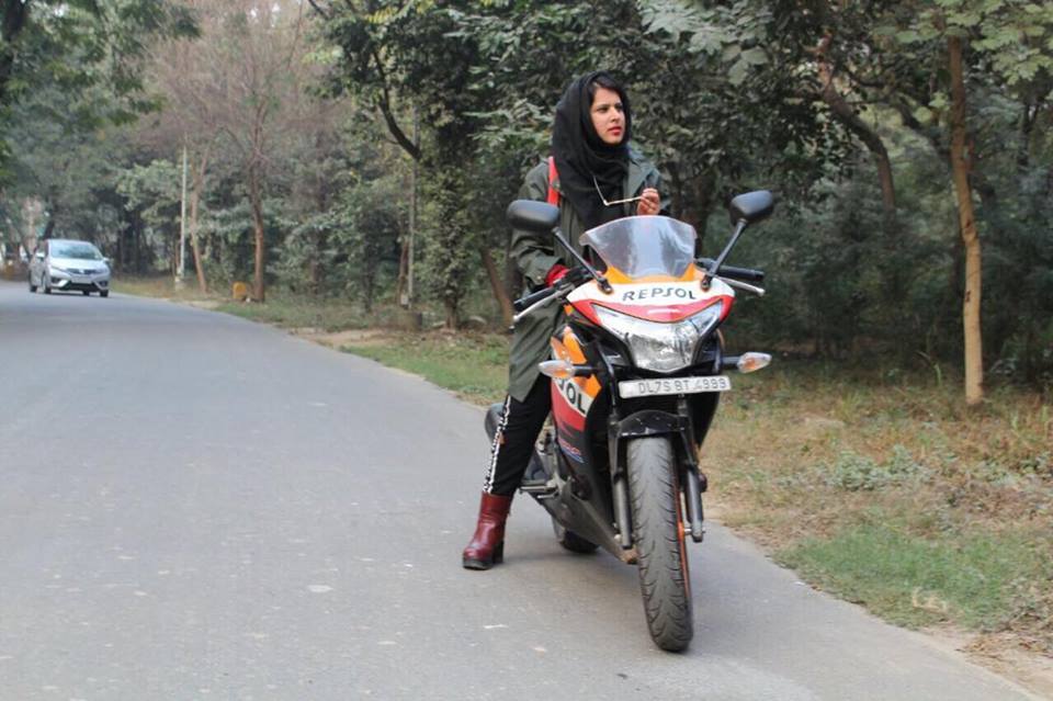 दिल्ली की जामिया यूनिवर्सिटी से अरेबिक कल्चर स्टडीज में एमए करने वाली रोशनी मिसबाह लेदर जैकेट, जींस और हाई हील के बूट और सिर पर हिजाब पहनकर बाइक चलाते हुए आती हैं.