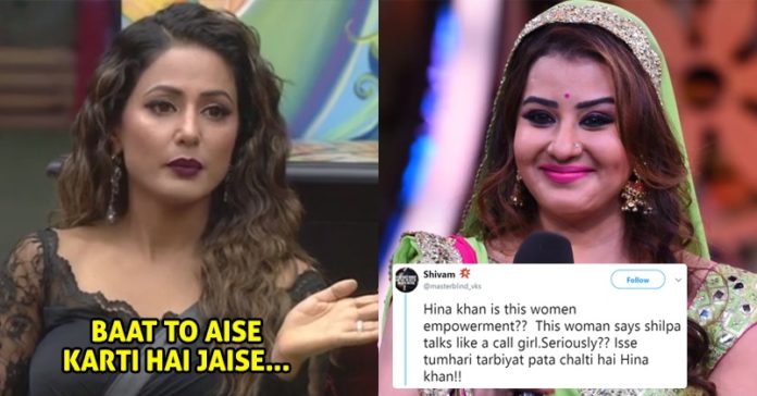 हिना खान किसी लड़की पर ऐसे तोहमत लगा रही हैं, जैसे उनके पास सबूत हों. हिना खान ने अपने चरित्र को गिरा दिया और शिल्पा शिंदे को कॉल गर्ल तक कह डालीं.