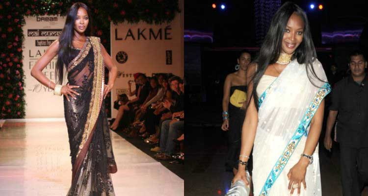 लैक्मे फैशन वीक में नाओमी कैंपबेल साड़ी में कहर बरपा चुकी हैं इसके अलावा एक इवेंट पर नाओमी साड़ी में नजर आ चुकी हैं. आप भी देखिए साड़ी में नाओमी कितनी खूबसूरत नजर आ रही हैं.