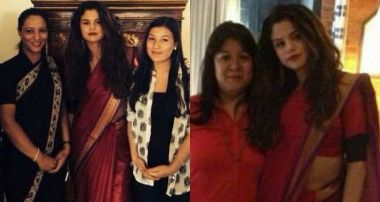 यूनिसेफ के एक प्रोग्राम के तहद हॉलीवुड की बाला सेलेना गोम्ज़ ने साड़ी पहनी थी. आपको बता दें कि सेलेना ने ये साड़ी नेपाल दौरे के दौरान पहनी थी.