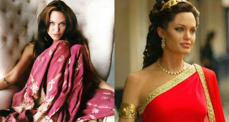 आपको बता दें कि हॉलीवुड एक्ट्रेस एंजेलिना जॉली ने एक लिकर ब्रैंड के ऐड के लिए फ्यूशिया पिंक साड़ी और स्ट्रैपलेस ब्लाउज पहना था. इसके अलावा वो रेड साड़ी में काफी खूबसूरत लग रही हैं.