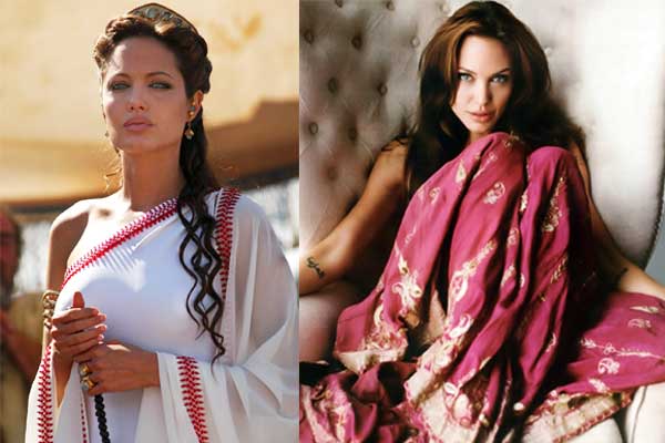 एक फोटोशूट के दौरान जोली चटख गुलाबी रंग की साड़ी में काफी मादक लगी. साथ ही एक फ़िल्म के लिए पहनी सफेद और लाल रंग की बार्डर वाली साड़ी में वो भारतीय राजकुमारी सी लगी.