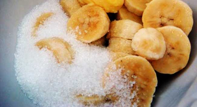 केला कई पोषक तत्वों से भरपूर होता है और इसी तरह यह आपकी त्वचा के लिए भी अच्छा माना जाता है. पके हुए केले को शक्कर के साथ पेस्ट बना कर अपने चहरे पर हलके हाथों से मालिश करें और कुछ देर बाद गरम पानी से चेहरा धो लें. केले से आपकी त्वचा मुलायम भी बन जाती है.