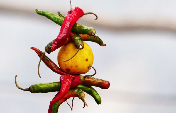 घर के दरवाजे पर नीबू मिर्च टांगना