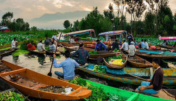 दुनिया के स्वर्ग कहे जाने वाले जम्मू-कश्मीर में कोई तैरता बाजार बना हुआ नहीं है। मगर श्रीनगर की मशहूर डल झील में हर सुबह 5-7 बजे नावों में सब्जी बेची जाती है। यह मार्केट लगभग 60 के दशक से चला आ रहा है। इतना कम समय होने के बावजूद मार्केट में पर्यटकों की बहुत भीड़ हो जाती है और इस बाजार का सालाना 35 करोड़ रुपए तक का टर्नओवर है।