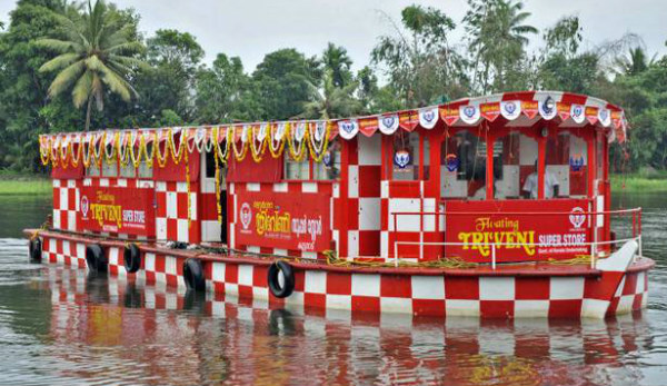 केरल में एक बोट पर ‘Floating Triveni Super Store’ नाम से मॉल बना हुआ है। यह बोट मॉल करीब के 50 से ज्यादा गांवों में घूमता है और इस पर अनाज से लेकर टीवी सेट्स तक ख़रीदे जा सकते हैं।