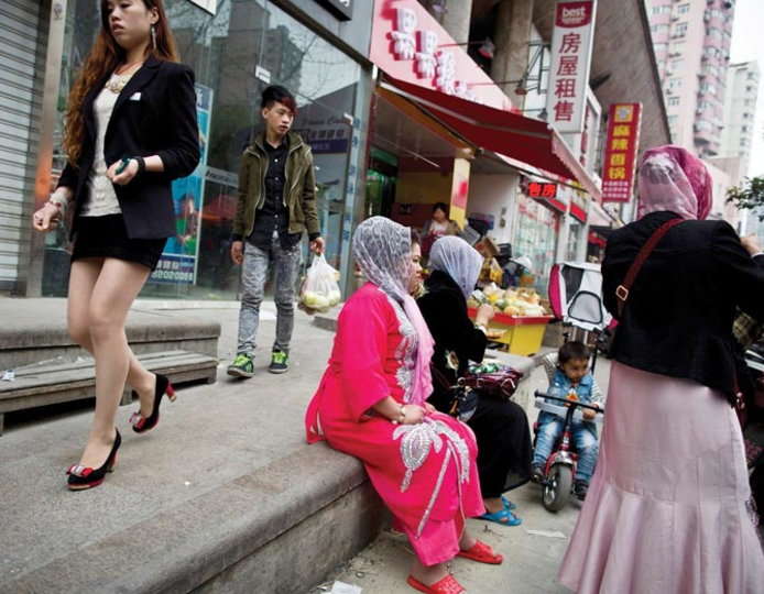 यहां चीनी पुलिस ने कुछ मुस्लिम महिलाओं के लंबे कपड़ों को सरेआम कैंची से काट दिया.