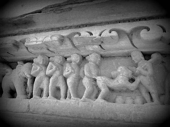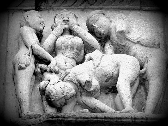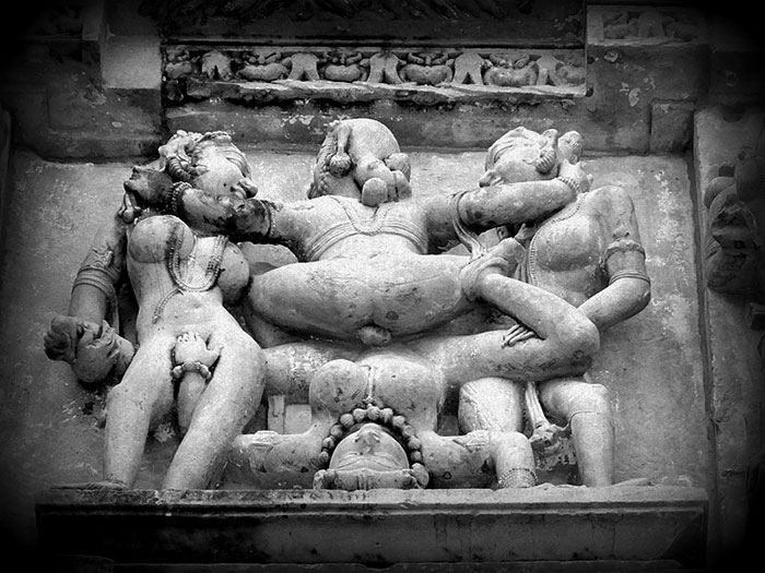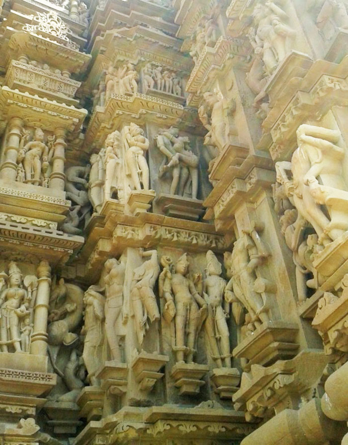 खजुराहो की कामुक मूर्तियाँ – खजुराहों के कुछ मंदिरों को जैसे कामसूत्र का चित्रण बोला जाता है.