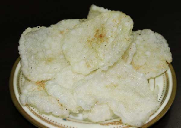 पके चावल में नमक, धनिया, काली मिर्च मिलकर पीस ले. इस पेस्ट को थोडा गर्म पानी कर उसमे रवा मिला कर उबाल ले और चावल में मिलाकर चावल को पतला घोल बनाकर तैयार कर लें. फिर एक पॉलथिन बिछाकर घोल को चम्मच में ले लेकर उसपर पापड़ जैसे पतला गोल गोल फैला दें और तेज धुप में सुखा दे. जब एक तरफ सुख जाये तो धीरे धीरे हल्के हाथों से उसे निकाल कर पलट दे फिर अच्छे से तेज धुप में 3-4 दिन सुखा ले. सुख जाने के बाद तेल में तल के मेहमानों को परोसे.