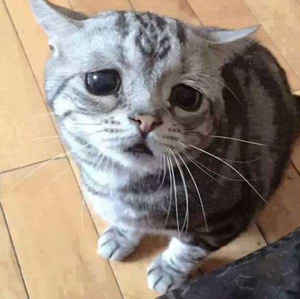 इस दुखी बिल्ली का नाम लुहु है. चाहे कुछ भी क्यों न करे, लेकिन इसके चेहरे के भाव कभी बदलते नहीं. उसकी आंखों में हमेशा एक अजीब सी उदासी छाई रहती है.