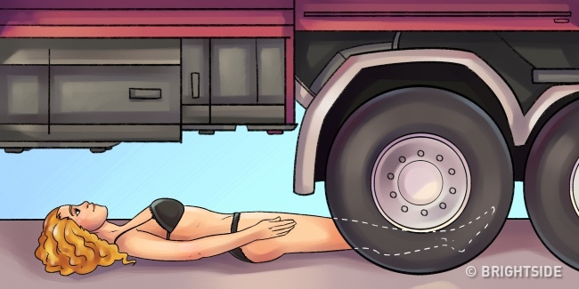 ऐसा आपने देखा होगा और देखने के बाद आपको लगा होगा कि ऐसे कैसे हो सकता है. इससे तो लड़की मर जाएगी या उसकी टांग कट जाएगी, लेकिन ऐसा होता नहीं हैं. असल में ये इनके हाथ की सफाई होती है. बच्चे ये जादू देखने के बाद तो डर जाते हैं. उन्हें लगता है कि ये सब सच में हो रहा है. उनकी आँखों के सामने एक लड़की के ऊपर से गाड़ी चली गई. इसे जादू नहीं बल्कि एक ट्रिक कहेंगे. भौतिक विज्ञानं का एक ट्रिक, जो लड़की को बचा लेता है. इस ट्रिक में जादूगर फिज़िक्स के नियम का पालन करता है. काउंटरवेट जो गाड़ी के अंदर होता है, वह गाड़ी के संतुलन में बदलाव करता है, जिससे ट्रक के हल्के साइड का पहिया जादूगर को बिना नुकसान पहुंचाए निकल जाता है. इस तरह से किसी गाड़ी के ऊपर से जाने के बाद भी लड़की को कुछ नहीं होता और वो सही सलामत खड़ी होकर दर्शकों का अभिनन्दन करती है.