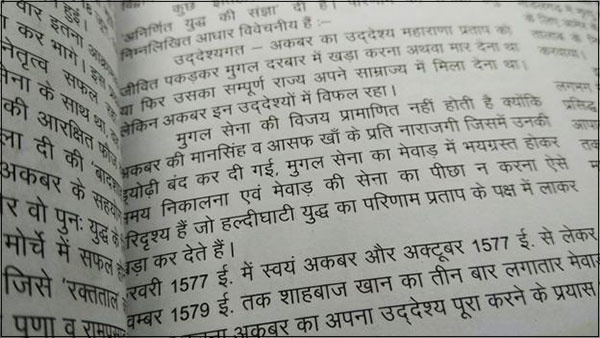 राजस्थान की किताबों में हुए बदलाब के बाद अब हल्दीघाटी युद्ध के इतिहास में करीब 360 डिग्री का बदलाब आ गया है। दरअसल सोशल मीडिया की सुर्खियां की माने तो राजस्थान की किताबों में हल्दीघाटी के युद्ध में महाराणा प्रताप को अकबर से युद्ध में विजयी बताया गया है, हालांकि ऐतिहासकारों द्वारा दर्ज इतिहास के मुताबिक सच्चाई इसके बिल्कुल ही विपरित है।