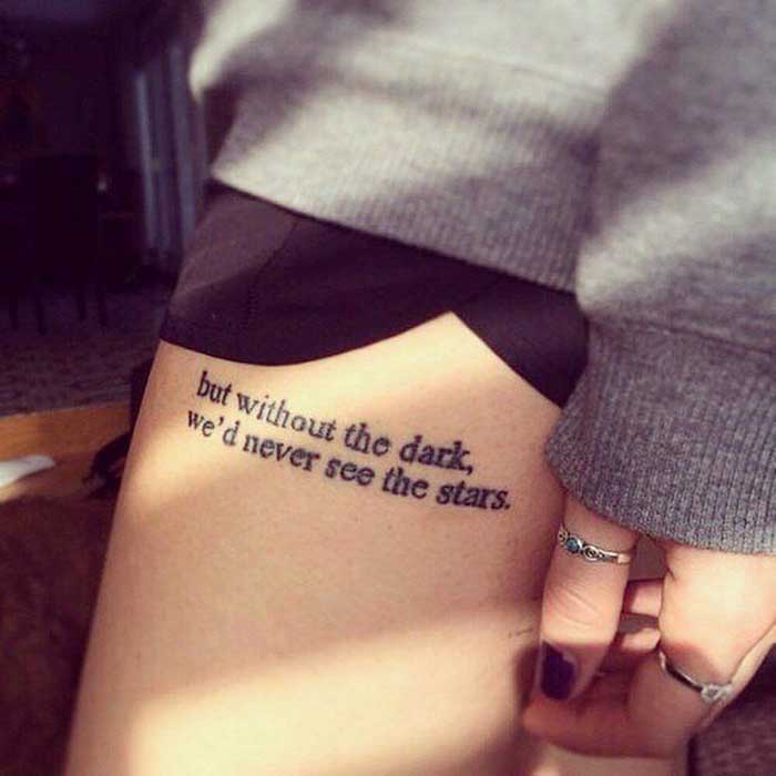 14. वाकई यह टैटू कितनी खास बात बोलता है. यह बोल रहा है कि अगर अँधेरा ना हो तो क्या हम तारों को देख सकते हैं? आप खुद ही सोचिये.