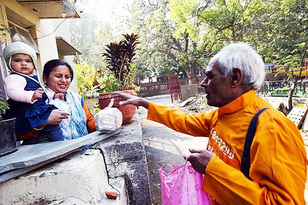 ओमकारनाथ रोज़ सुबह एक झोला लेकर निकल पड़ते है दिल्ली की सड़कों पर और अलग अलग कोलोनियों में, जहाँ वो घर घर जाकर दवाइयां इकट्ठी करते है.
