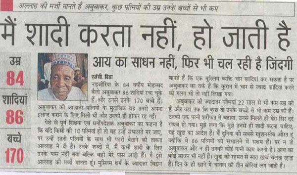 पता नहीं इस दुनिया में कैसे-कैसे लोग हैं और वो किस तरह से धर्म के नाम पर अय्याशी कर लेते हैं और इतनी सफाई से महिलाओं का शोषण कर लेते हैं। अबू बकर की पत्नियां भी ना जाने कैसी हैं जो उसके चंगुल में फंस गईं वो भी एक, दो या तीन नहीं पूरी 130 बीवियां। इस आदमी ने तो पूरी दुनिया को हैरान कर दिया है।