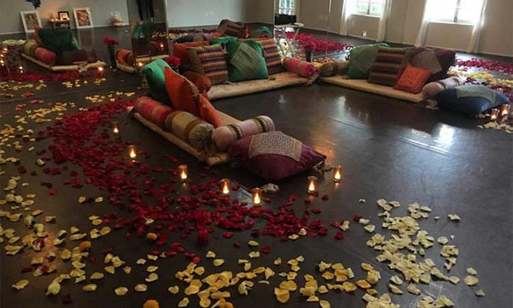 जबकि दूसरी तस्वीर में एक कमरे में फूल फैले हुए दिख रहे हैं और पूरा कमरा दीये की रोशनी से जगमगा रहा रहा है. फूल और दीयों से सजाए गए इस कमरे में बैठने के लिए कुछ आसन भी लगाए गए हैं. हो सकता है कि ये आसन पूजा में शामिल होनेवाले लोगों के लिए लगाए गए थे.