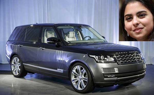 ईशा रेंज रोवर वोग लग्जरी suv गाड़ी से चलती हैं जिसकी कीमत 3.89 करोड़ रुपए है. Reliance इंडस्ट्रीज के चेयरमैन की बेटी को कई बार रेंज रोवर में देखा जा चुका है. वैसे तो उनके पास गाड़ियों की कमी नहीं लेकिन अक्सर ईशा इसी गाड़ी में दिखाई देती हैं. ं