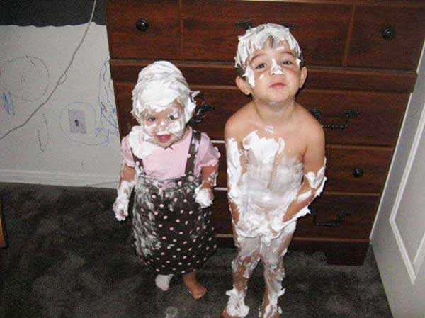 - इस तस्वीर में बच्चे जीतने शरारती लग रहे हैं उतने ही क्यूट भी दिख रहे हैं, इन दोनों बच्चों ने खुद को घर में सभी की निगरानी से दूर समझ कर खुद को झाग से पोत लिया. यह तस्वीर वाकई बेहद मजेदार है.