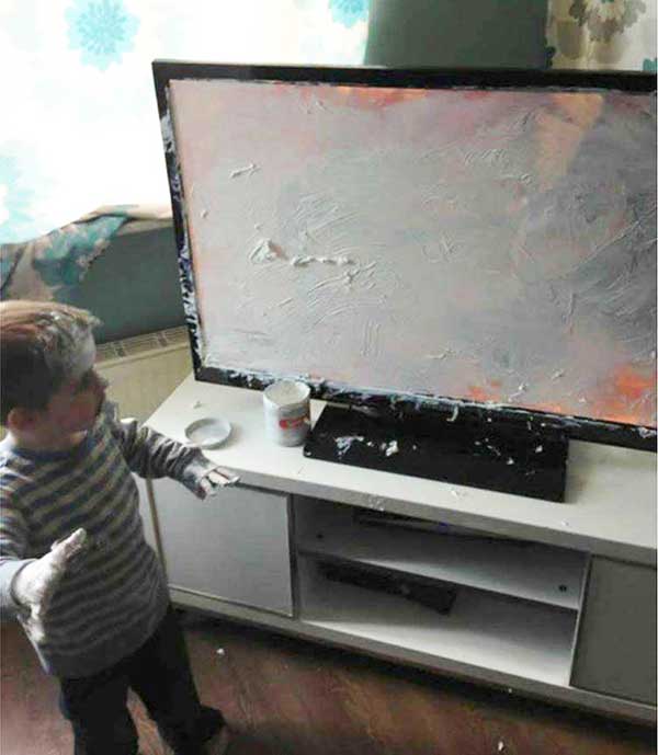 - इन जनाब को जब घर में और कोई काम ना मिला तो इन्होंने अपनी बोरियत मिटाने के लिए अच्छे खासे टीवी को रंग डाला.