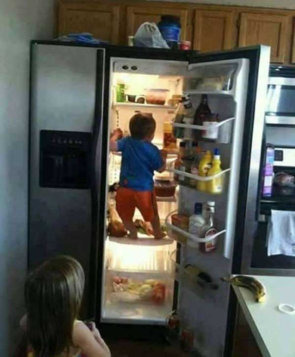 - भूख से लाचार इस बच्चे को ना जाने कितनी मुश्किलों का सामना करते हुए फ्रिज पर चढ़ाई कर अपने और अपनी बहन के लिए खाना निकालना पड़ा होगा. यदि इनकी मम्मी पहले से टेबल पर खाना रख जाती तो शायद उन्हें ऐसा ना करना पड़ता.