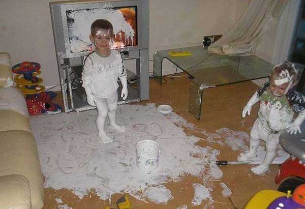 - एक से भले दो वाली कहावत तो आपने सूनी ही होगी, इस तस्वीर को देखने के बाद आप समझ जाएंगे की एक से भले दो कभी कबार दुगने शैतान हो जाते हैं. अगर आपके घर में भी इतने छोटे बालक है तो कभी भी पेंट का डब्बा खुला ना छोड़ें.