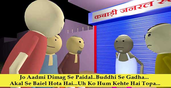 ६ – जो आदमी दिमाग से पैदल, बुद्धि से गधा और अक्सल से बैल होता है औउ को हम कहते हैं टोपा