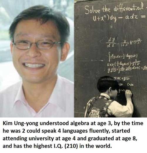 साउथ कोरिया में 8 मार्च 1962 को जन्मे किमउंग-योंग दुनिया के तीसरे सबसे बुद्धिमान व्यक्ति हैं. किम का आक्यूलेवल 210 है जो कि एक समय पर दुनिया का हाईयेस्ट बुद्धि स्तर था. यहाँ तक कि किम का गिनीजबर्ल्ड बुक ऑफ रिकॉर्ड में सबसे ज्यादा आक्यू होने वाले व्यक्ति का एक समय पर नाम तक दर्ज था. केवल 6 साल कि उम्र में कोरियाई, जापानी, जर्मन व अन्य अंग्रेजी भाषाए सीख ली थी. किम वर्तमान में एक सिविल इंजीनियर हैं और इस से पहले वह साउथ कोरियन प्रोफेसर और चाइल प्रिडोलॉजी भी रह चुके हैं.