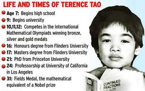 टेरेंसटो इस समय पृथ्वी के सबसे बुद्धिमान व्यक्ति हैं. टेरेंस वैसे तो अमेरिकी चीनी हैं लेकिन उनकी परवरिश और जन्म ऑस्ट्रेलिया में हुआ था. टेरेंस ने गणित की समस्याओं को हल करने की नई तकनीक का योगदान दिया है जिससे प्रभावित हो कर उन्हें विश्व की कई वैज्ञानिक कंपनीयो और संस्थाओं द्वारा कई पुरस्कार भी मिल चुके हैं. जिनमें से सबसे कीमती पुरस्कार है 2003 में मिला क्लेरिसर्च खिताब. आपको जानकर शायद हैरानी हो लेकिन जिस उपाधि को पाने में टिचर्स को सालों लग जाते हैं, टेरेंस ने उसे मात्र 24 वर्ष की उम्र में ही प्राप्त कर लिया है वह इतनी कम उम्र में ही परिपूर्न प्रोफेसर बन गए हैं. टेरेंस का आईक्यूलेवल 230 है.
