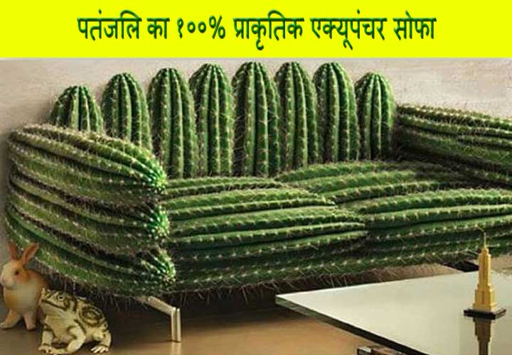 ये है बाबा राम देव का सोफा. अब इस सोफे पर ज़रा बैठकर तो दिखाइए. ऐसा सोफा होगा तो कोई बैठेगा ही क्यों. बेचारे के हर जगह निशान हो जाएगा.