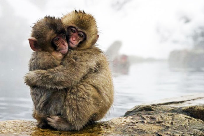 1. अब वैसे देखने में तो यह तस्वीर जैसे मौसम की मार लगती है लेकिन असल में जब इन दो छोटे बंदरों को सर्दी लगी तो इन्होनें अपने रिश्ते को ही चादर बना लिया और बहुत खूबी से उसको ओढ़ भी लिया.