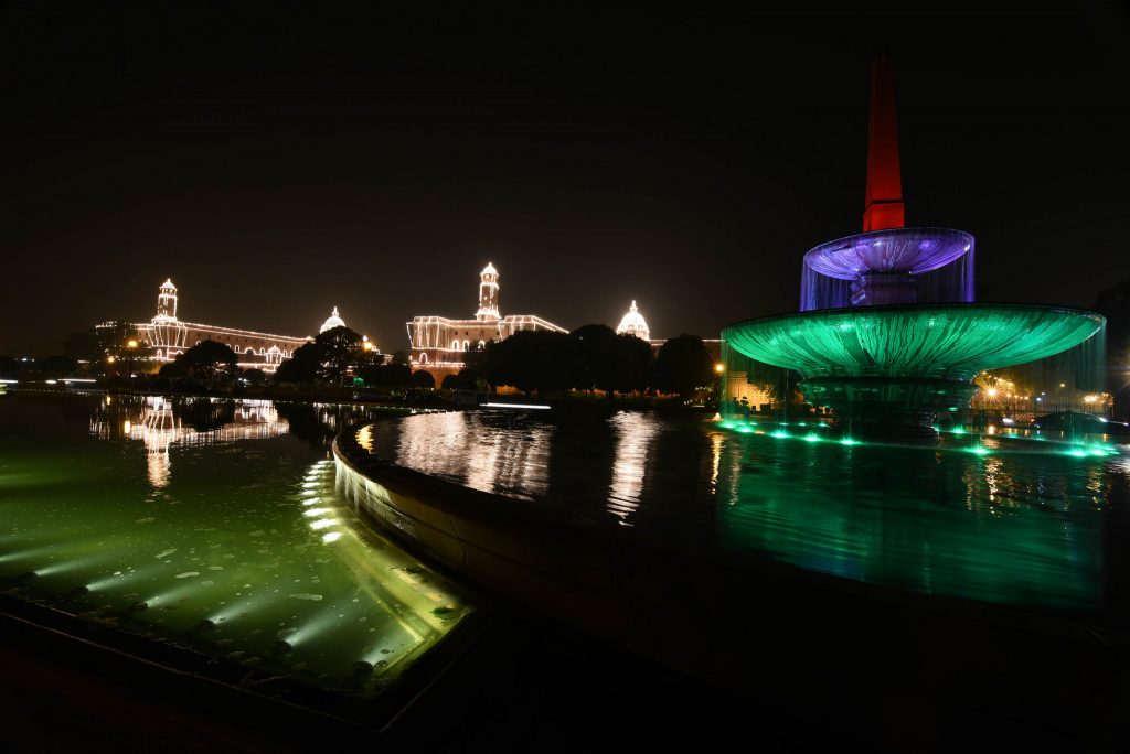 रंग-बिरंगी रोशनी वाले फव्वारे राजपथ की खूबसूरती को आकर्षक बनाते हैं.