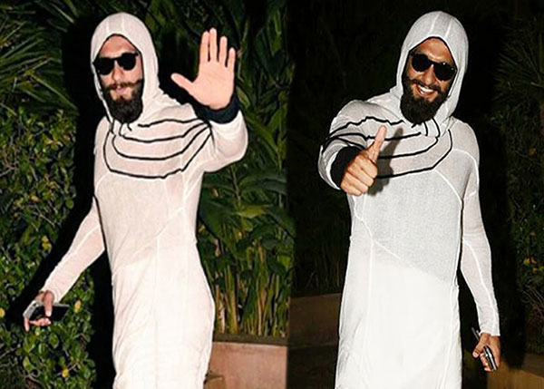 ४ -अब रणवीर सिंह ने यह ड्रेस क्यों पहना इस का सही जवाब एक्टर ही बता सकते हैं। लेकिन इस ड्रेस के साथ रणवीर ने अपने फैशन आइकल को जरूर ही बचा कर रखा।