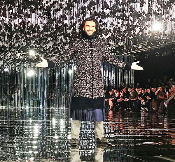६ – इन सब के बाद इस तस्वीर में देखिए रणवीर सिंह का रैम्प वॉक पर ब्लैक एंड बोल्ड लुक, इसमें रणवीर आकर्षित लग रहे हैं। लेकिन उनका पॉज एक्टर के स्टाइल को प्रजेन्ट कर रहा है।
