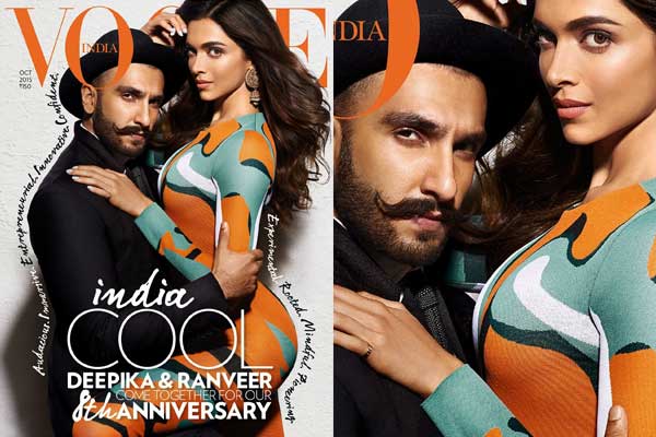 3. बॉलीवुड के सबसे हॉट कपल रणवीर और दीपिका वोग मैग्जीन के कवर नजर आ रहे है काफी कूल स्टाईल में