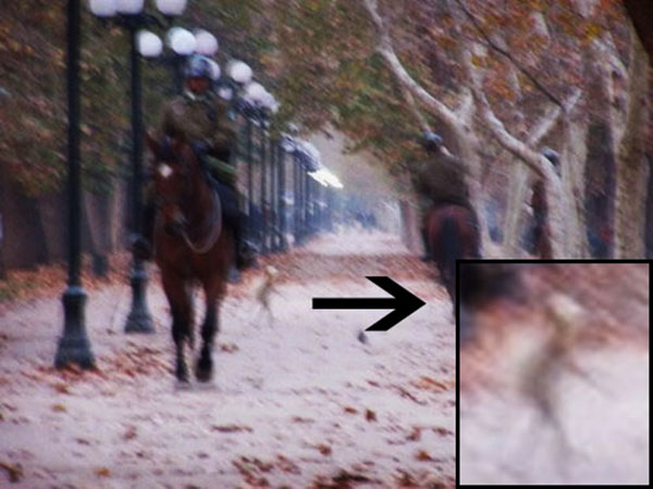 2. इस तस्वीर में जूम करके दिखाया गया है कि दोनों घुड़सवार लोगों के बीच में एक एलियन है.