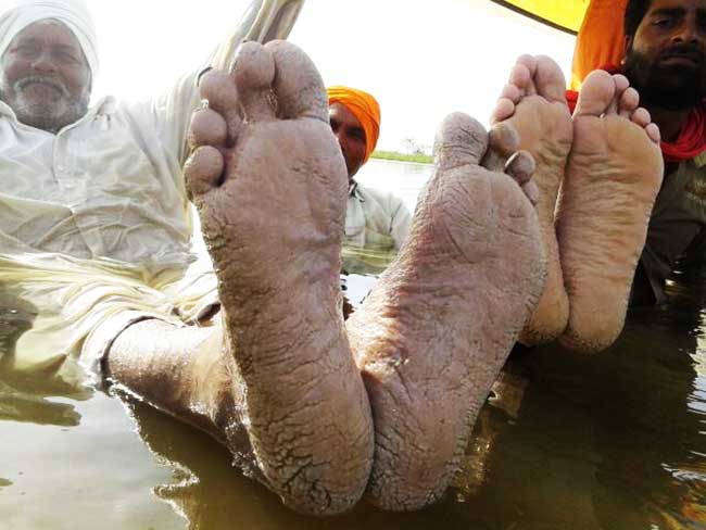 पिछले 22 दिन से पानी में रहकर जल सत्याग्रह कर रहे सत्याग्रहियों के पैरों की खाल गल रही है, खून रिस रहा है और मछलियां उसे अपना निवाला बनाए जा रही हैं. लोगों के पैर अब गल रहे हैं. मगर अपने हक़ की लड़ाई में कोई भी पीछे नहीं हटना चाहता है.
