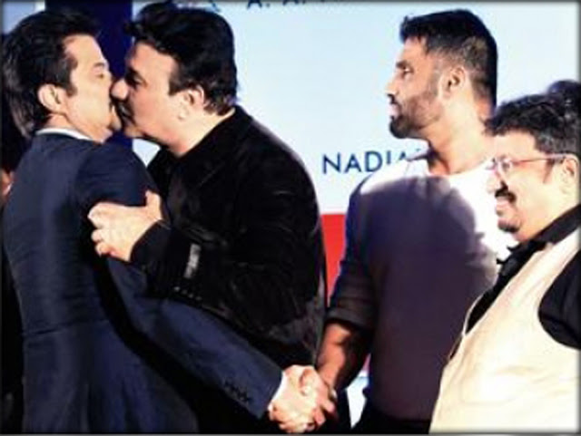 अनु मालिक का यूँ इस तरह से अनिल कपूर को अपनी ओर खींचकर गले लगाना ऐसा लग रहा है जैसे वो अनिल को किस्स करने की कोशिश कर रहे हैं. खुद अनिल कपूर भी ये फोटो देखकर शरमा गए होंगे.