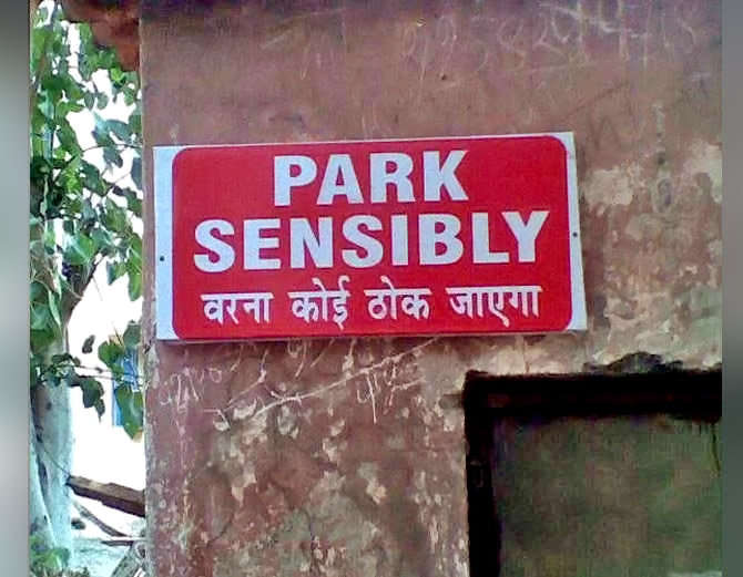 २ – ऐसा पार्किंग बोर्ड कहीं देखा है। नहीं देखा तो अब देख लीजिए वरना कोई ठोक जाएगा।