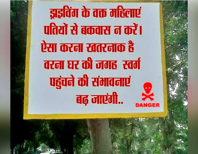 ९ – पत्नियों को लेकर तो सोशल मीडिया पर वैसे ही बहुत से जोक्स घूमते रहते हैं। अब तो साइन बोर्ड को भी नहीं छोड़ा। लगता है इसे बनाने वाला अपनी पत्नी के बकवास ज्यादा ही परेशान है।