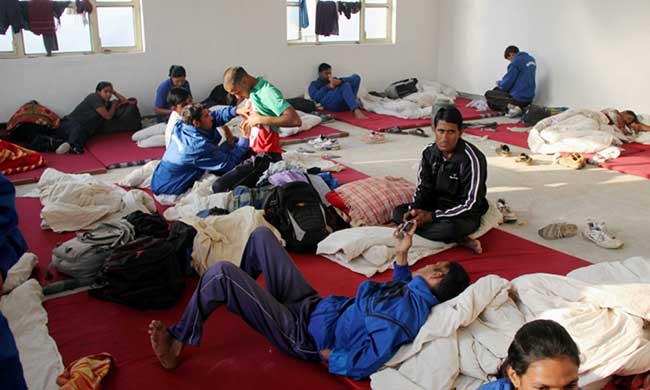 इमारत में जो शौचालय बने हुए हैं उनमे ठीक से पानी का आना जाना तक नहीं होता, कई प्रतियोगिओं को एक साथ एक ही कमरे में रखा गया था. उन्हें उचित बिस्तर तक नहीं दिए गए थे. बस कुछ चटाईयाँ बिछा दी गईं और उनका वहीं पर सोने का बंदोबस्त कर दिया गया था.