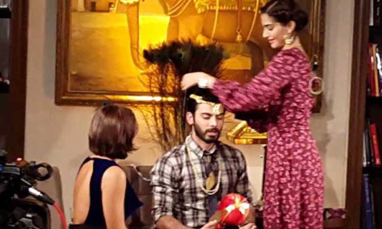 5- फिल्म ‘खूबसूरत’ के सेट पर रत्ना पाठक, फवाद खान और अभिनेत्री सोनम कपूर कुछ इस तरह से मौज-मस्ती करते हुए दिखे.