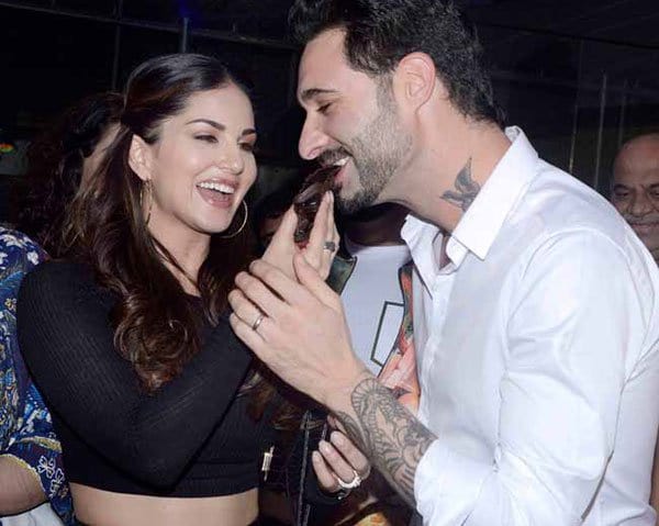 3 – इस फोटो में सन्नी डेनियल को केक खिला रही है।