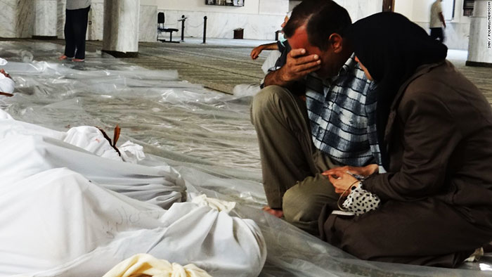 2 – सीरिया के शहरों में चारों ओर मौत पसरी हुई है. लोगबाग अस्पतालों में अपने परिजनों की लाशे तलाश रहे हैं. यहां सैकडों लोगों की मौत हो चुकी है और कई सौ घायल है.