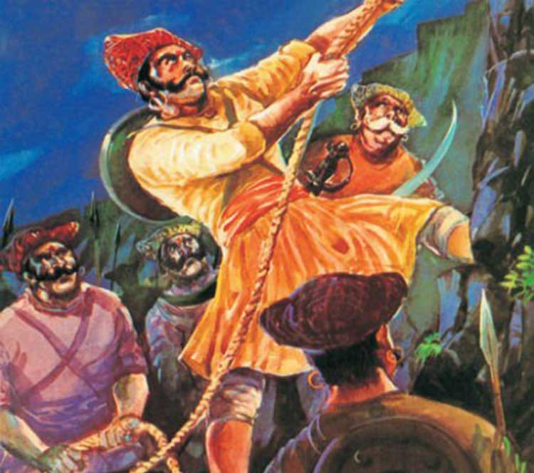तानाजी कुछ 1000 लोगों की सेना रात को लेकर ही किले की तरफ बढ़ गये थे. इनकी योजना थी कि रात को ही किले के ऊपर चढ़ लिया जाये और जब सब सो रहे हैं थी सभी को मारना शुरू कर दिया जाये. जब तक ये लोग कुछ समझे तब तक हम काफी लोगों को मार चुके होंगे. किले की दिवार पर से ऊपर चढ़ना शुरू किया गया, किन्तु जब तानाजी के 300 लोग ही ऊपर चढ़े होंगे कि तभी मुग़ल पहरेदार जाग जाते हैं.