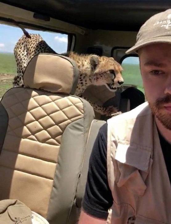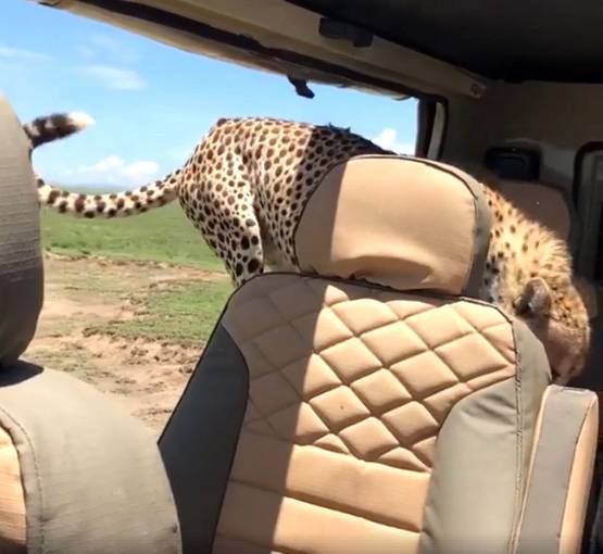 वो पीछे की सीट पर जाता है. चीता इतनी तेजी से कार में घुस आया कि टूरिस्ट कार स्टार्ट कर वहां से भाग भी नहीं सके. बाद में टूरिस्ट ने स्थिर रहना ही उचित समझा. अगर उसने डरने और उसे भगाने की ज़रा भी कोशिश की होती तो शायद टाइगर उसे वहीँ खा जाता.