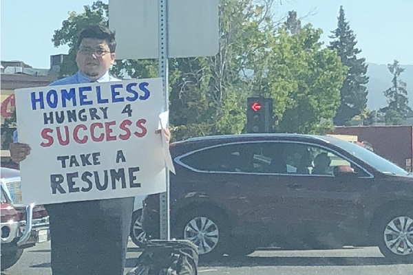 पहले तो डेविड ने हर कंपनी में ट्राई किया लेकिन जब बात नहीं बनी तो उसने रेज्यूमे भेजने की जगह सड़क पर ही लोगों को अपना रेज्यूमे बांटना शुरु कर दिया। लोग उसे भिखारी ना समझें इसलिए उसने एक पोस्टर भी अपने साथ ले रखा था जिस पर लिखा था ‘बेघर लेकिन सफलता का भूखा, रेज्यूमे ले लीजिए’।