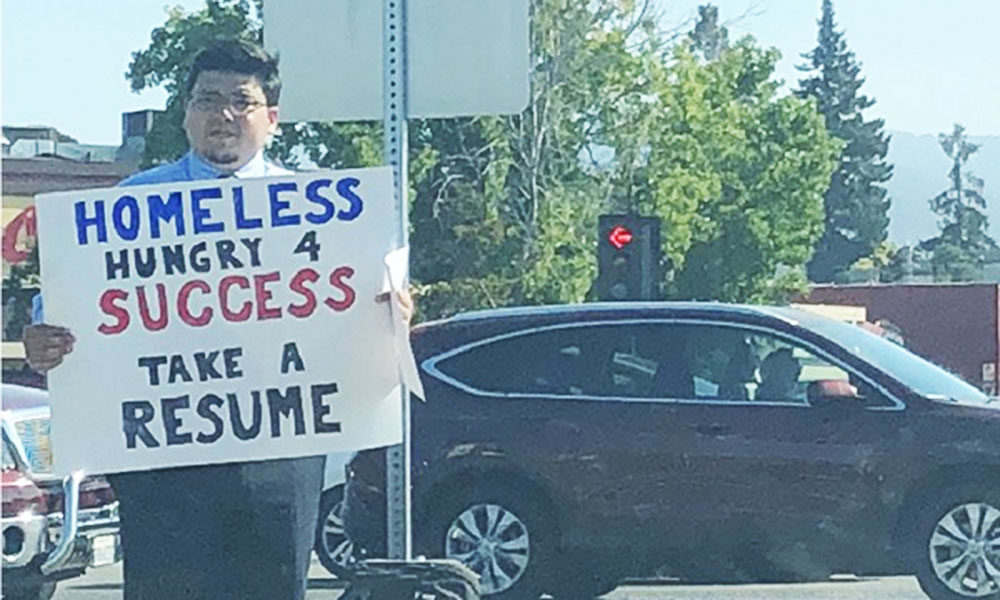 पहले तो डेविड ने हर कंपनी में ट्राई किया लेकिन जब बात नहीं बनी तो उसने रेज्यूमे भेजने की जगह सड़क पर ही लोगों को अपना रेज्यूमे बांटना शुरु कर दिया। लोग उसे भिखारी ना समझें इसलिए उसने एक पोस्टर भी अपने साथ ले रखा था जिस पर लिखा था ‘बेघर लेकिन सफलता का भूखा, रेज्यूमे ले लीजिए’।