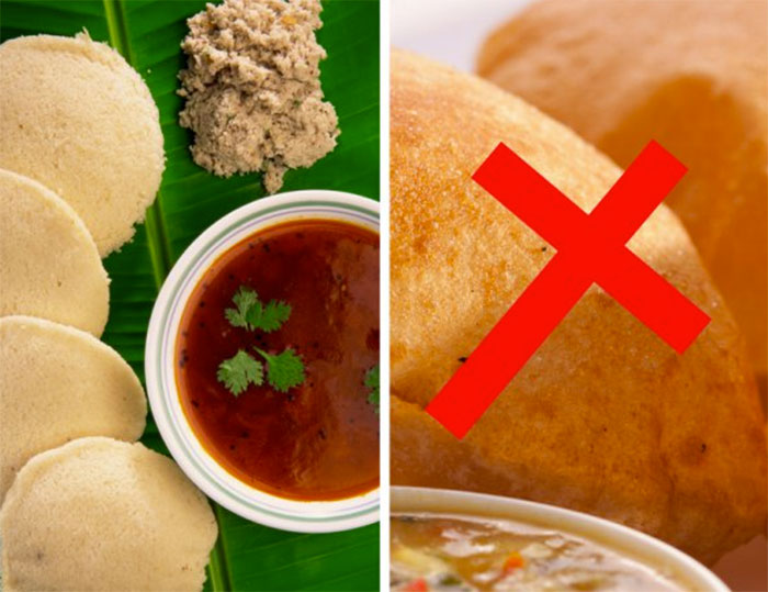 7 – आलू पूरी के बदले इडली सांभर खाएं