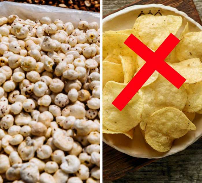 6 – पोटैटो चिप्स की जगह रोस्टेड मखाना खाएं