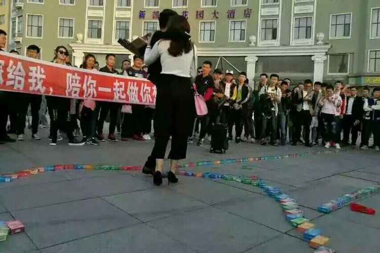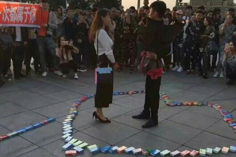 दरअसल उत्तरी चीन के हार्बिन में एक लड़के ने खुलेआम सड़क पर 999 कंडोम के पैकेट्स से दिल का शेप बनाया. कंडोम के पैकेट्स से बने इस दिल में अपनी प्रेमिका को लेकर आया और घुटने के बल बैठ गया. फिर अपनी प्रेमिका का हाथ अपने हाथों में लेकर उसने भरी महफिल में प्रपोज किया.